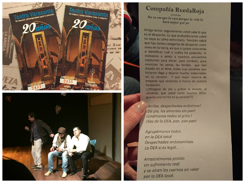 Una vez empezaron las intervenciones de los actores, el asunto fue distinto. Siete personajes distintos contaron sus historias de despecho haciéndonos reír muchísimo, pero también mostrándonos lo patético que es a veces el amor y lo patético que es siempre el despecho.